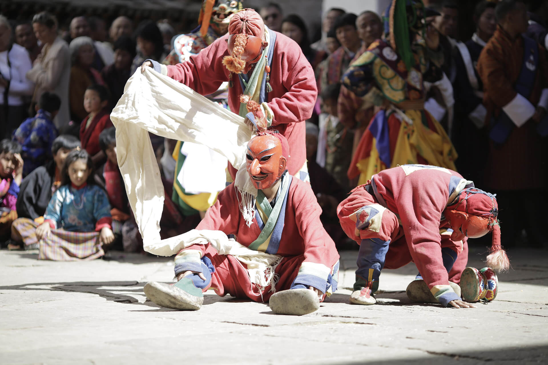 Unlike most of the other dzongs in Bhutan, it survived the massive 1897 earthquake mostly unscathed, though it was almost burnt to the ground by a fire in 1907. All-important relics were lost to the fire and nothing could be salvaged except for the Thongdrol, a 20×20 meter-wide Thangka. The Thangka is displayed annually during a ceremony called Paro Tshechu. The Dzong was however rebuilt the following year.